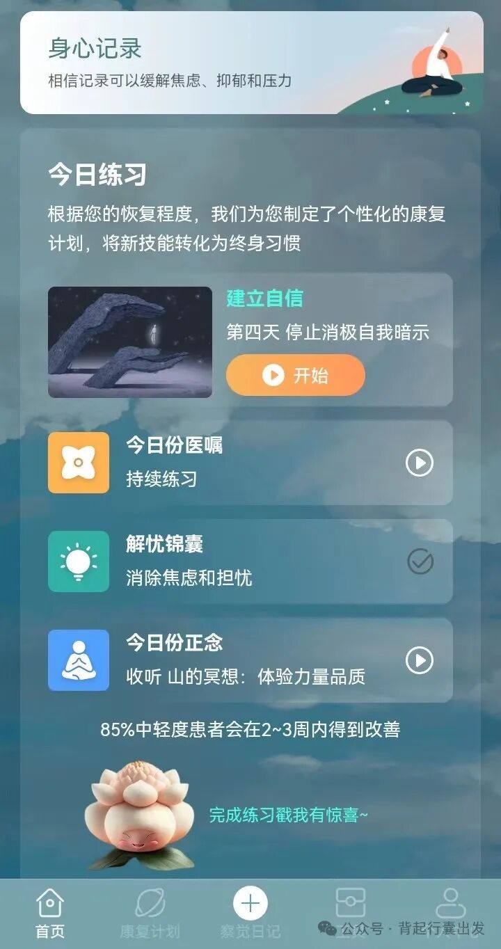 推荐一款LotusHope小程序,帮你在不知不觉中养成好的行为习惯,有效降低抑郁症状。只需按文字/音频指导,步骤清晰,每天20分钟,自由安排时间练习。