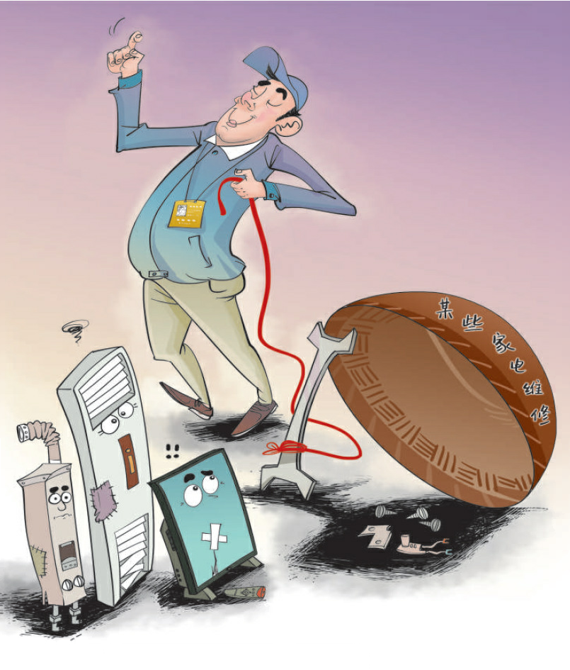 买了家电,自然是希望安装、维修等环节,厂家能尽心负责,做到售前和售后一个样。售后服务总能遇到一些添堵的事,主要有以下几个原因。其一,从业者“鱼龙混杂”。家电安装维修从业者主要分为企业自营、外包服务和个体人员等几类,技术水平和服务意识参差不齐。而对于安装维修,消费者需求往往较为迫切,通过线上等渠道搜索,很有可能联系到山寨维修点、“李鬼式”维修工。其二,缺乏统一服务标准。从维修规范到收费价格,行业尚未形成相对明确的标准,给个别人漫天要价提供了可乘之机。其三,信息存在不对称性。家电领域有很多专业技术问题,消费者并不清楚个中原理。维修工将几颗螺丝搞定的事,虚构为重大故障,难免令人上当。