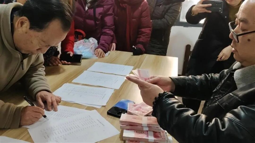 业主领取分红(视频截图)。图片来源:光明网