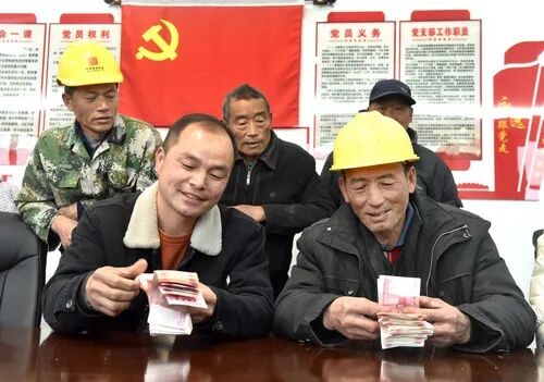 江西景德镇市,农民工们正在领取民警帮自己追回来的“欠薪”。朱定文 摄(人民视觉)