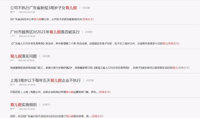 各地网友反映育儿假执行问题。