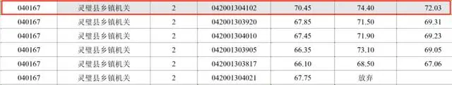 该考生报考职位的成绩表。图片来源:澎湃新闻