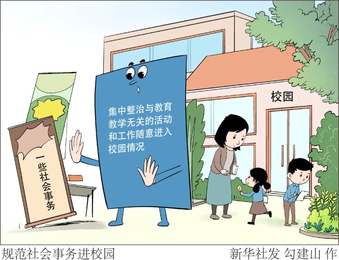 长期以来,进校园活动似乎成为一个“什么都能装的筐”,一些地方和部门经常向学校和教师摊派任务。督查检查评比考核事项过多,材料重复报送;承包校外路段卫生、买保险都成了老师的工作;打卡接龙、拍照留痕,指尖上的形式主义有向校园蔓延的倾向;更有甚者,若家长及学生骑车不戴头盔,将通报批评学校老师。各式各样纷至沓来的非教学任务,挤占了正常教育教学活动的时间精力,成为基层学校和教师的沉重负担。有老师无奈吐槽,“当了老师后才发现,教书竟然是占比最小的那个工作环节”。