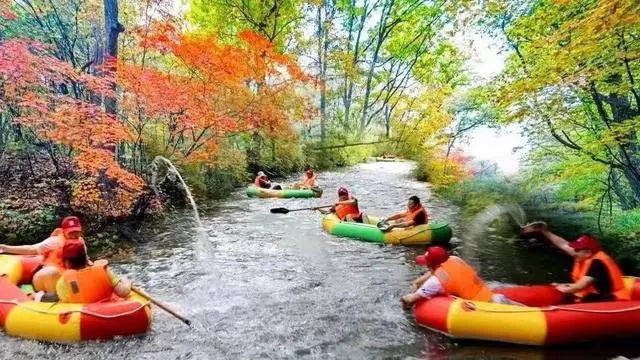 吉林省白山市抚松县的露水河长白山狩猎度假区,游客正在漂流。央广网发(白山市委宣传部供图)