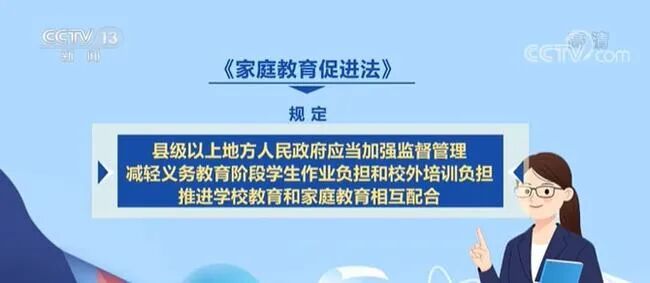 需要看到,此次家庭教育促进法的实施,是在贯彻落实“双减”政策的大背景下进行的,为的就是调动全社会力量,共同做好家庭教育工作。目前,各地在作业管理、课后服务和课堂教学质量等方面的改革工作取得明显成效,不过在个别地方,相关教育服务还缺乏足够的针对性,一些家长仍然放不下“攒班”“刷题”的焦虑,对于如何利用好孩子多出来的时间缺乏规划。由此来看,家庭教育促进法呼应“双减”要求,要求畅通学校家庭沟通渠道,推进学校教育和家庭教育相互配合,可以说是正当其时,有助于推进“双减”政策进一步发挥实效。