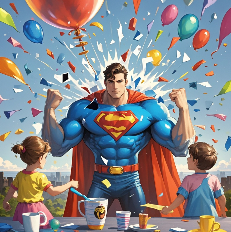 有一个名叫杯具的超人,他的超能力是无论做什么,都会以最糟糕的方式结束。有一天,杯具去参加一个儿童的生日派对,他打算给大家带来欢乐。然而,当他试图举起一个巨大的气球时,气球却爆炸了,碎片四处飞溅,孩子们都吓哭了。杯具尴尬地站在原地,感叹自己的超能力。