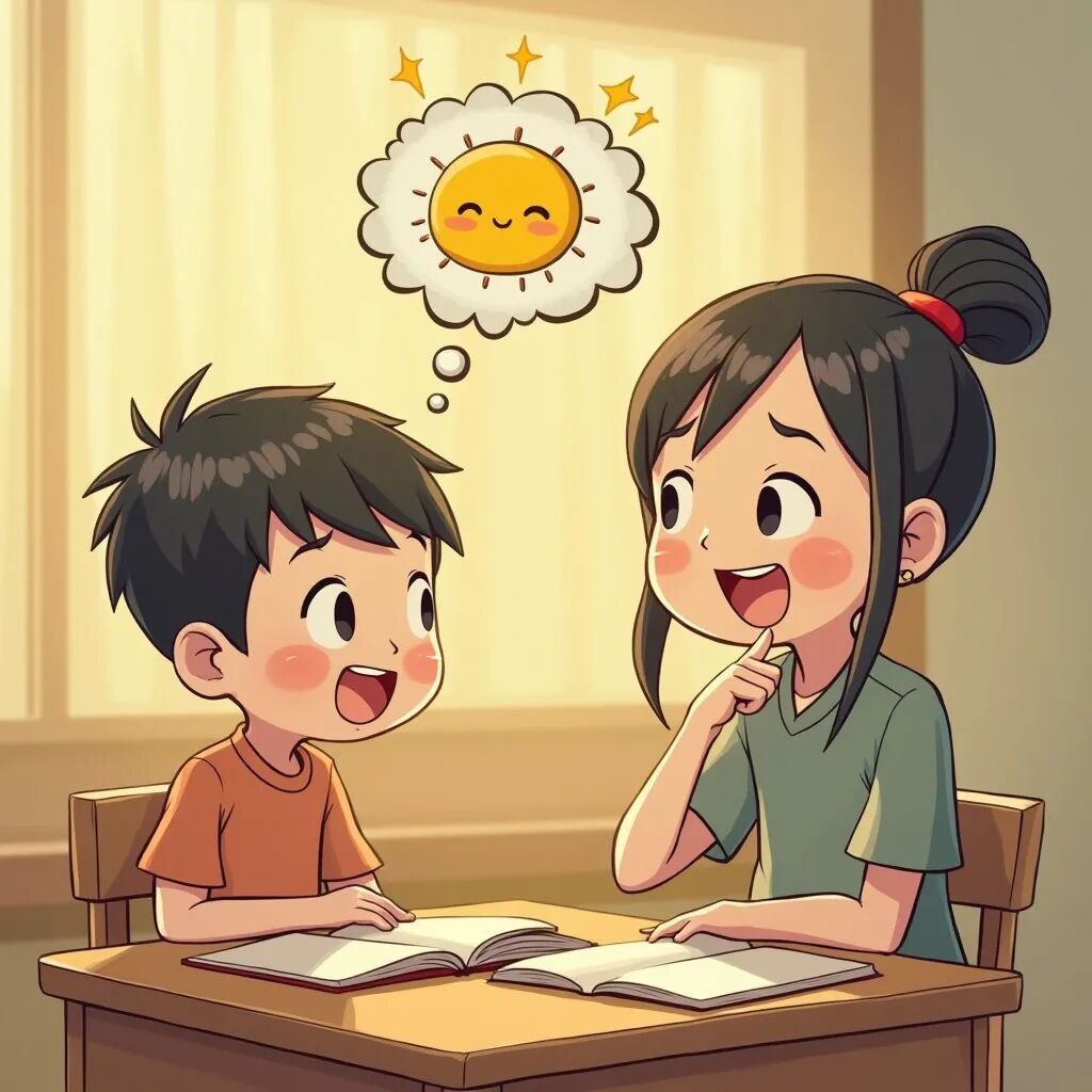 老师(笑):“那是因为你爸爸希望你像明亮的阳光一样,所以给你取名叫小明啊。”