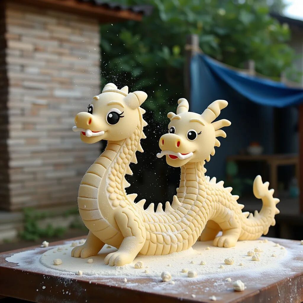 经过一番思考,小王决定制作一道名为“国庆巨龙”的面食。他花了整整一天的时间,用面粉制作了一条巨大的“龙”。这条“龙”长约一米,宽约几十厘米,龙头、龙身、龙尾栩栩如生。