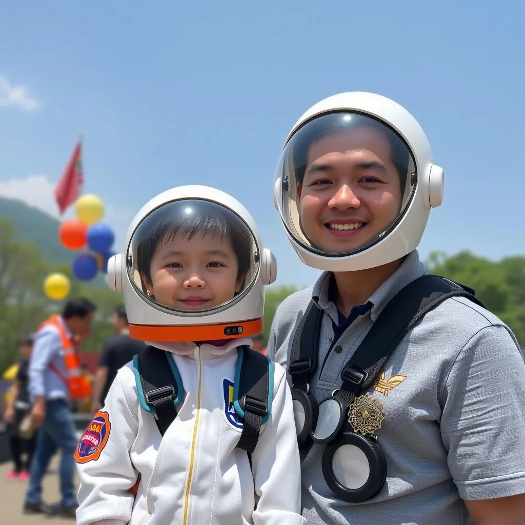 国庆假期,小刘带着儿子小明去公园游玩。小明一直有一个宇航员的梦想,于是小刘决定在这个特殊的日子里,满足儿子的愿望。