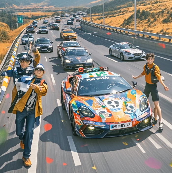于是,小张和朋友们的汽车在高速上与跑车展开了激烈的“赛车”大赛。他们你追我赶,不相上下。然而,当他们回头一看,却发现周围的车辆都已经停了下来,原来他们把高速当成了赛车场,引起了交通堵塞。