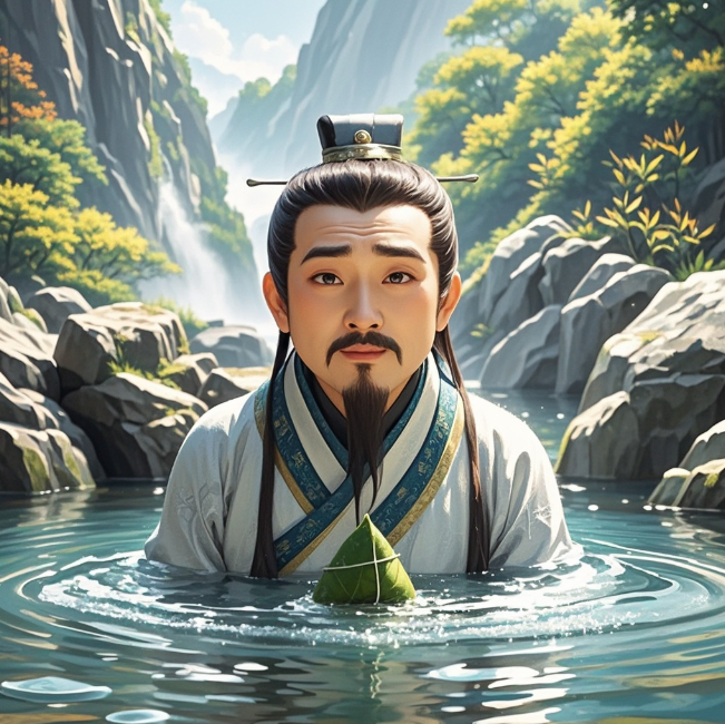 崔嵬从水中抬起头来,皇上故意问道:“你下水这么长时间,有没有见到大诗人屈原啊?