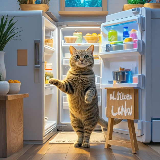 一只聪明的猫咪学会了打开冰箱门,主人为了防止它偷吃东西,顺势把门上安装了家庭影院的感应器。没想到第二天一早,主人发现猫咪竟然在门前摆着一个地摊,用它的爪子招呼着路过的人:“欢迎光临,请点餐!”