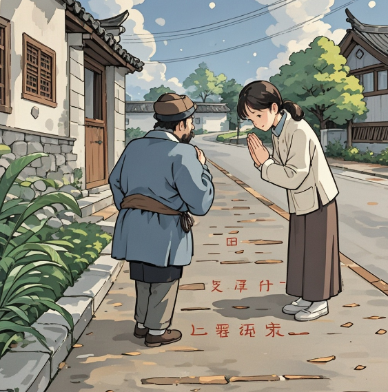 这天,他在路上遇到了朋友,按照老婆教的方法作揖,慢腾腾,慢腾腾,等到作完揖,朋友已经走得人影都不见了。