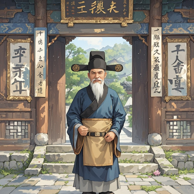 有个乡下人在巡抚衙门做看门的差事。他当差的第一天,太守前来拜见巡抚大人。他立刻进去通报:“太老官人来了!”