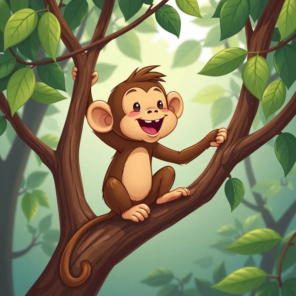 有一天,一个人来到森林里,看见一只猴子正在树上唱歌。