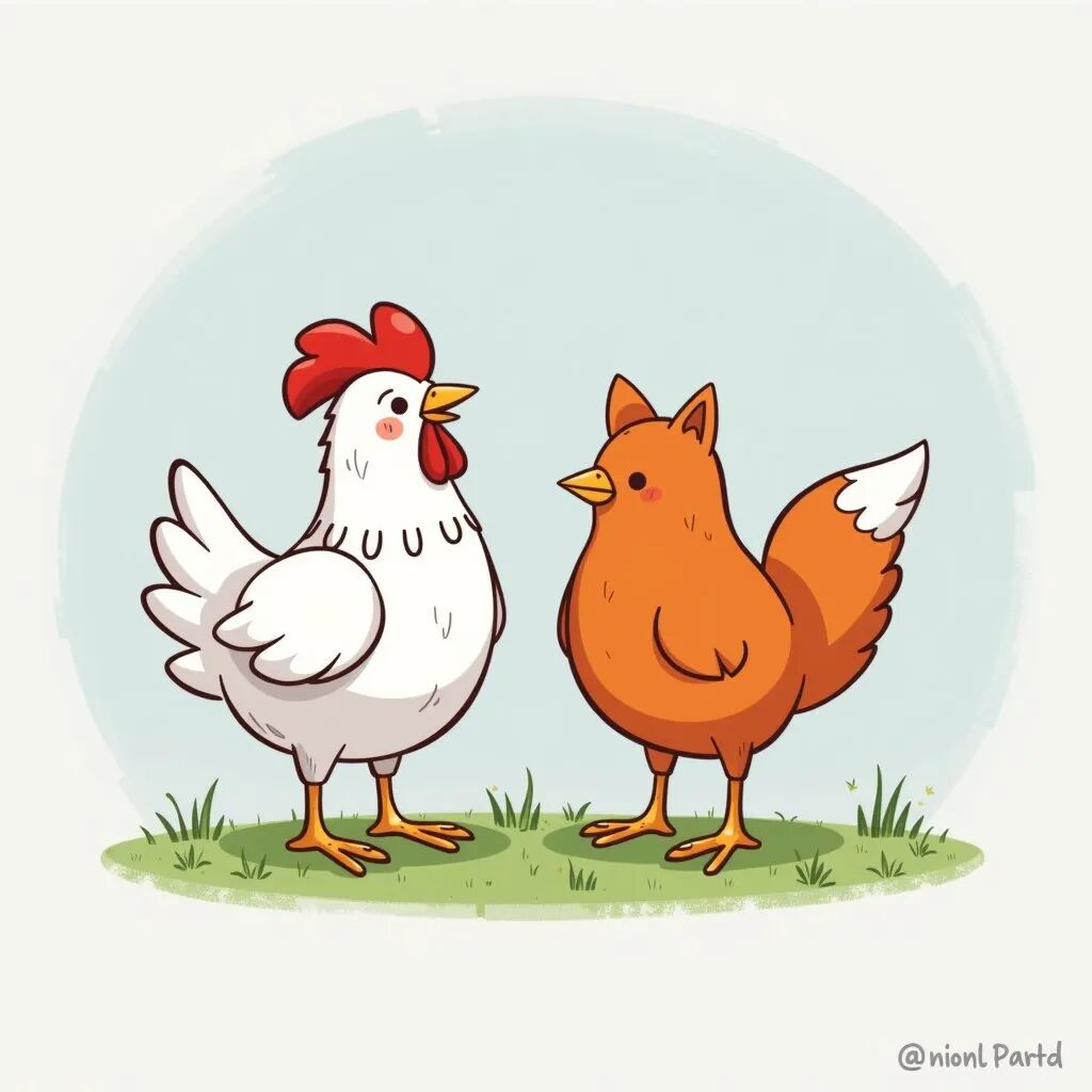 鸡自信满满地说:“当然是我先来的!没有我,哪里来的蛋?”