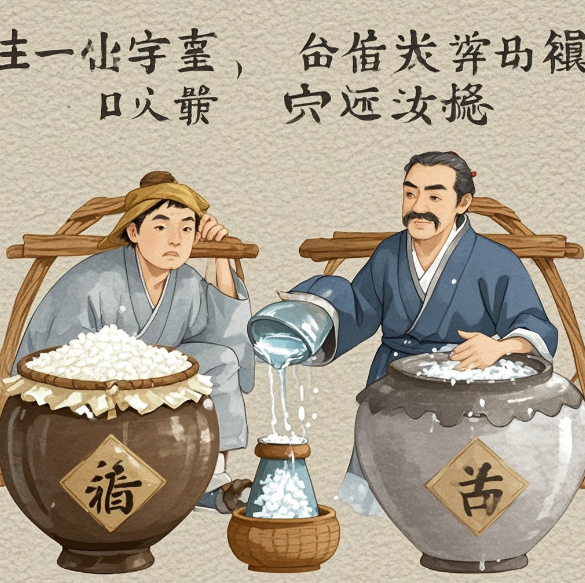 甲乙两人合伙做酒,甲对乙说:“你出米,我出水。