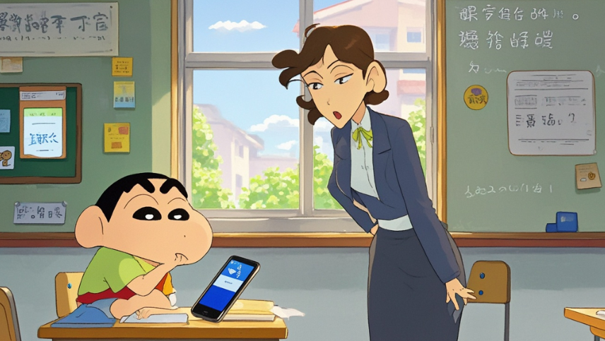 周一,小新在课堂上偷偷玩手机,正好被在教室外巡查的班主任看见了。