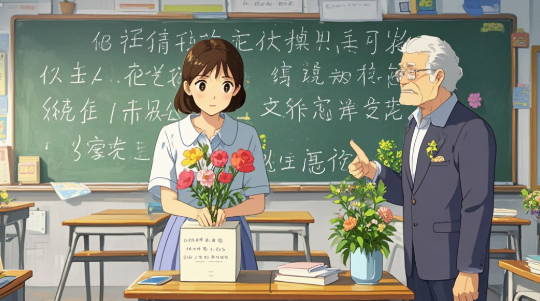当这名女生羞涩地去找教务主任时,教务主任说:“跟我去教务处,搬花……”