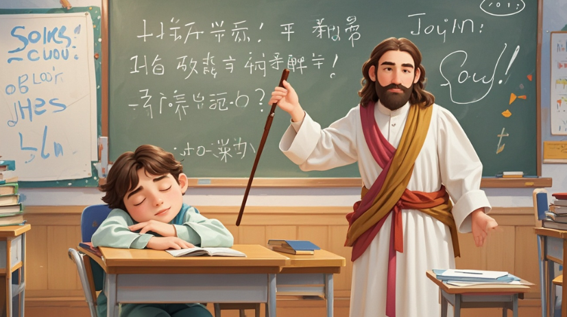 一位教师在课堂上打了一会儿瞌睡,当他醒来时,哄骗学生说:“我做了个梦,梦里我去见耶稣了。”