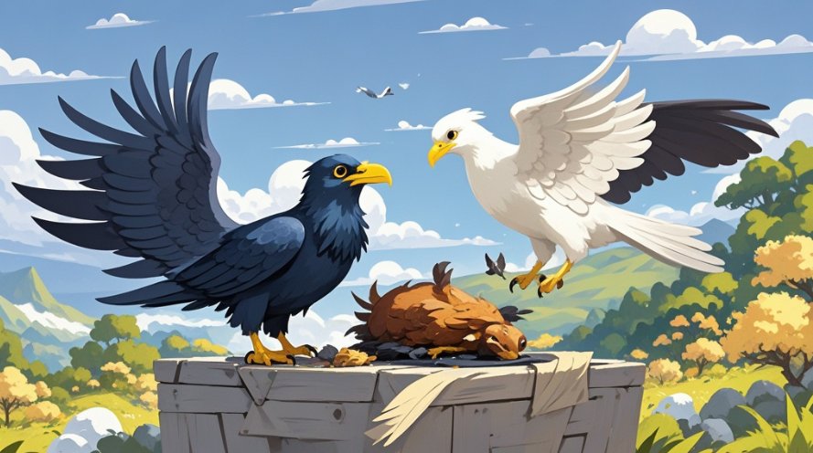 三天后,白鸽身负重伤飞回,只说了“斑鸠”两字便昏死过去。乌鸦说:“早就觉得那鸟反常,必为奸细。”鹰王大怒,命令乌鸦严刑逼供。斑鸠架不住打,含泪招供,被鹰王下令拖出去烤了。