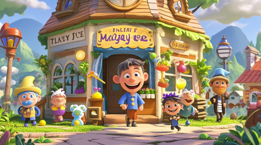 在一个遥远的国度,有一个叫做欢乐镇的小镇。这个小镇以它的欢乐和幽默而闻名,小镇的居民们都是出了名的好笑和有趣。在欢乐镇的中央,有一个非常特别的店铺——魔法果汁店。