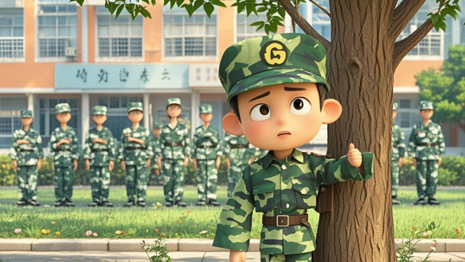 教官又大声说了一遍:“第一排报数!”于是,小明极其无奈地走到大树前--抱树。
