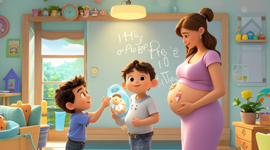 一对夫妻告诉他们5岁的儿子,说妈妈肚子里有个小婴儿,但要他先保守秘密,别告诉别人。