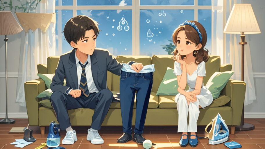 年轻人下班回家后,发现新婚妻子正坐在沙发上发愁“我真是没用,””她说:“我刚才替你熨那套西装,把裤子臀部烧了个大洞。”