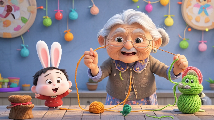有一次,小华的奶奶拿出一根普通的毛线,然后她开始变魔术般地将毛线缠绕在自己的手指上,转眼间,毛线变成了一只漂亮的兔子。
