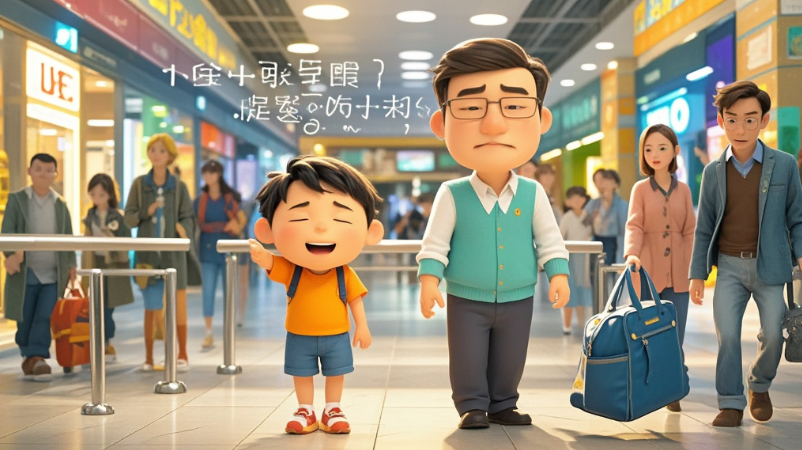小明的爸爸突然告诉他,他有一项超能力可以使他变得隐形。小明非常兴奋,他们决定一起去商场试试这个超能力。