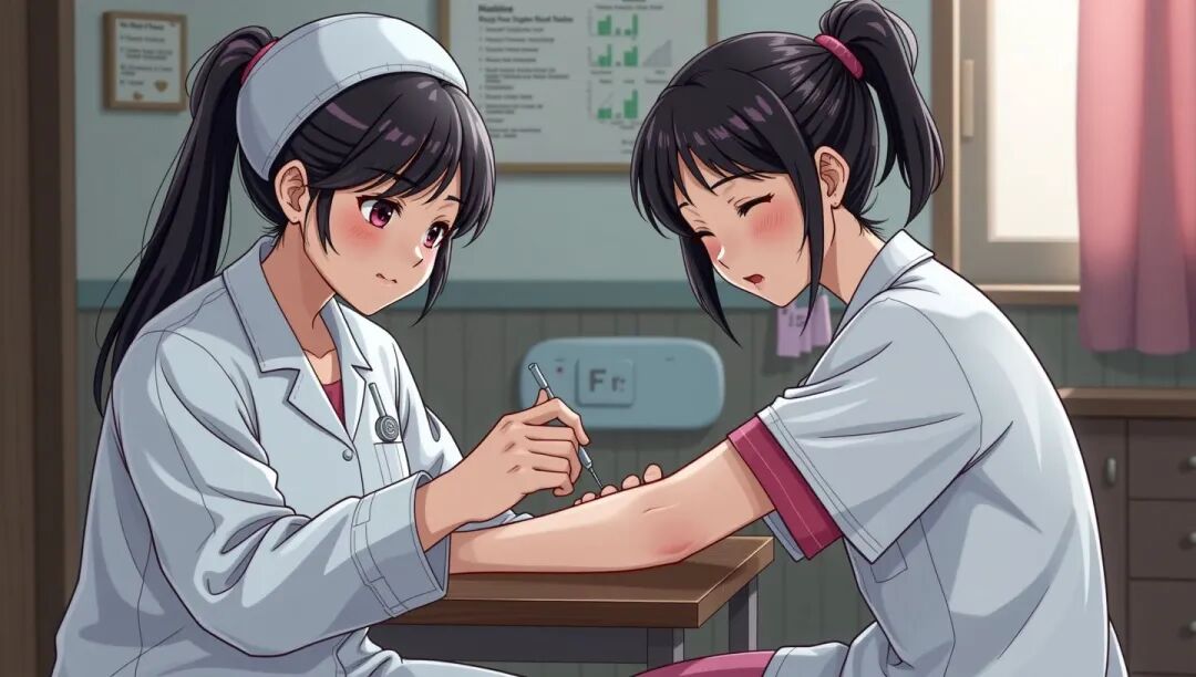 一个实习小护士给小吴抽血,她在小吴的胳膊上扎了好几针也没找准血管。但是,这位小护士表情非常镇定,但有不扎到血管誓不罢休的意思。十几针之后,小吴忍着剧痛,带着敬畏的表情问小护士:“你这针法是跟《还珠格格》里的容嬷学的吗?”