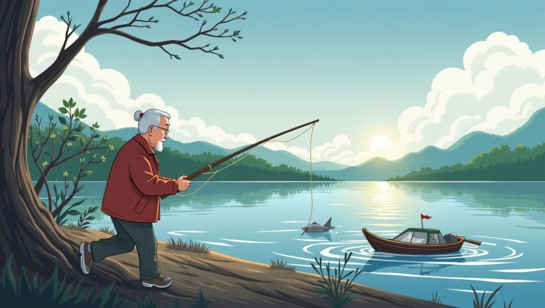 小王和老丈人一起去钓鱼。一条大鱼上钩了,小王用力往上拉,一下没站稳,把年过六旬的老丈人撞进了河里。老丈人上岸后没说别的,就说水有点凉。