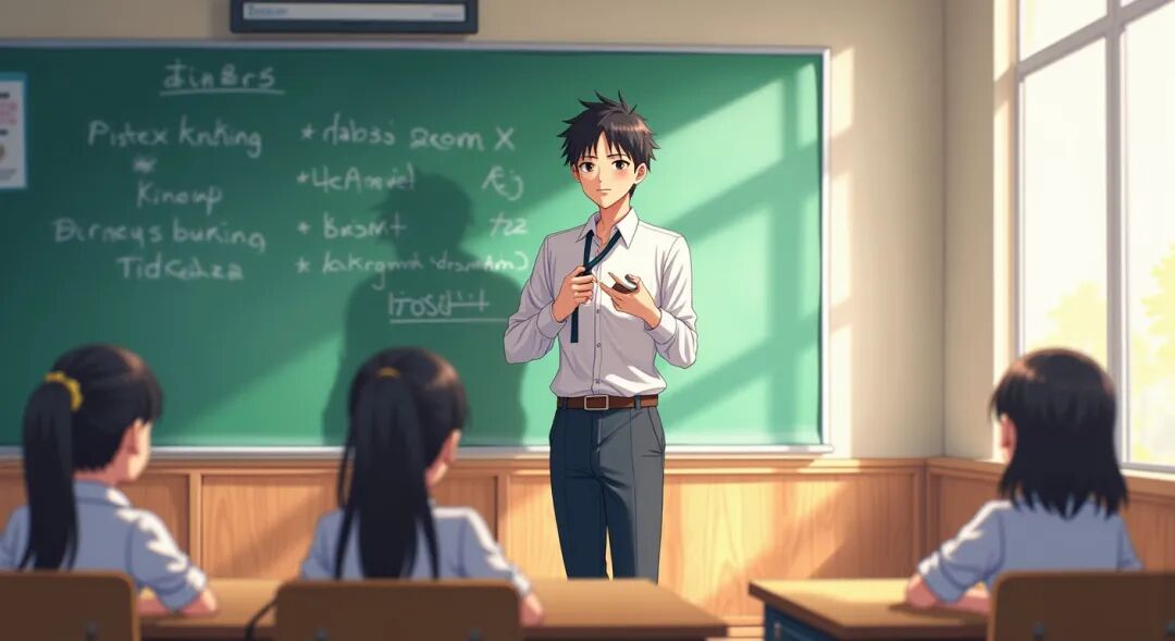 王老师的眼镜丢了,他还没来得及配,所以不得不裸眼上课。课堂上,他发现后排一个高个儿的学生时而抬头,时而写写画画,很不专心。