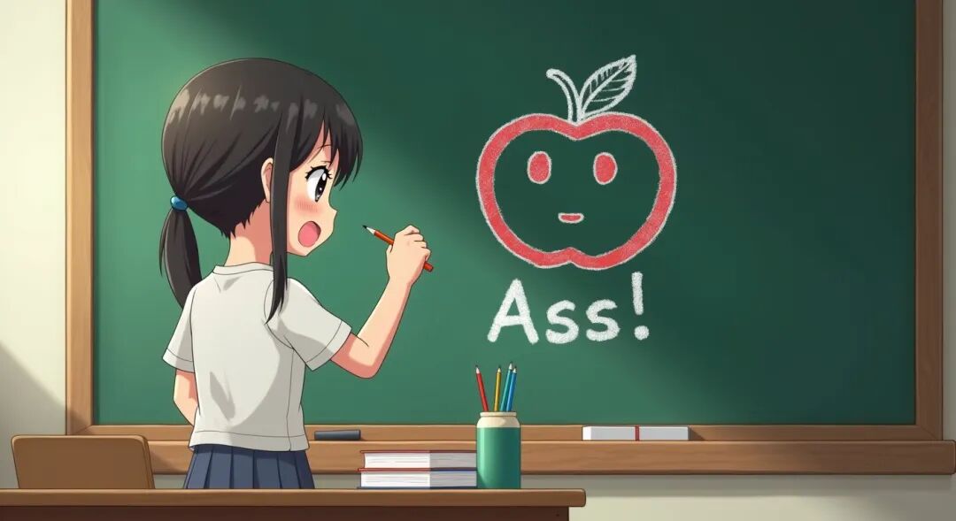 这时,他突然发现黑板上的画,“啊!是谁在黑板上画的屁股?”