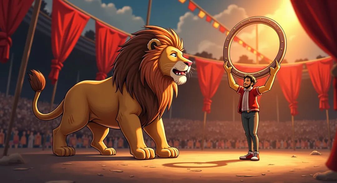 一个马戏团老板从动物园买了一头狮子,打算训练好后让它参加马戏团演出。
