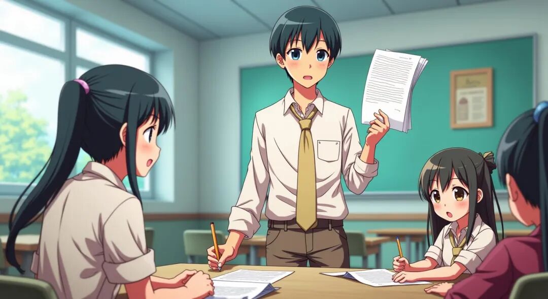 一天,他正在发学生考完的试卷。发到考得好的同学,他就把试卷举到头顶再发给他,考得一般的同学就把试卷放在桌上再给他,考得不好的同学就放在地上再给他。