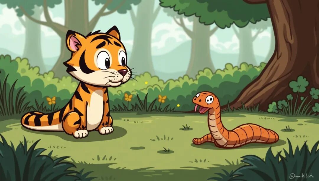 蛇被老虎毒打了一顿之后,心有不甘。一天,它看到一只猫,立刻狠狠地咬了猫一口,并说:“别以为你装可爱,我就认不出你!”