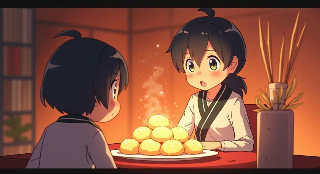从前,有一个人偷吃了一盒年糕,不想被父亲罚跪到三更才可以睡觉。