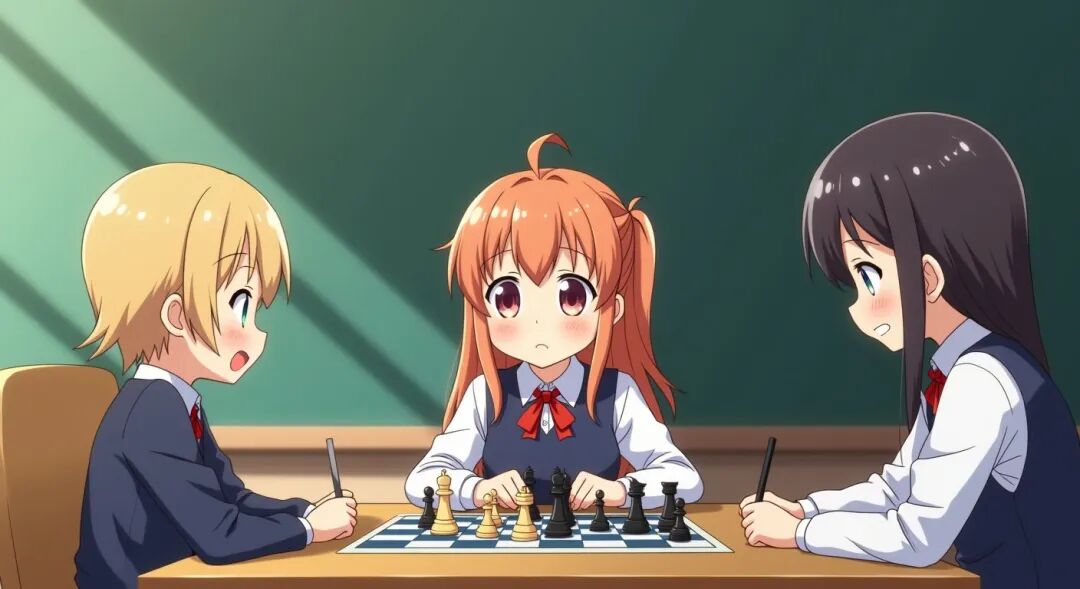 老师在讲课时看到班长周围有几个同学总是低头看书桌下面,后来才知道他们是在下象棋。老师很生气,质问道:“课时间为什么下象棋?”