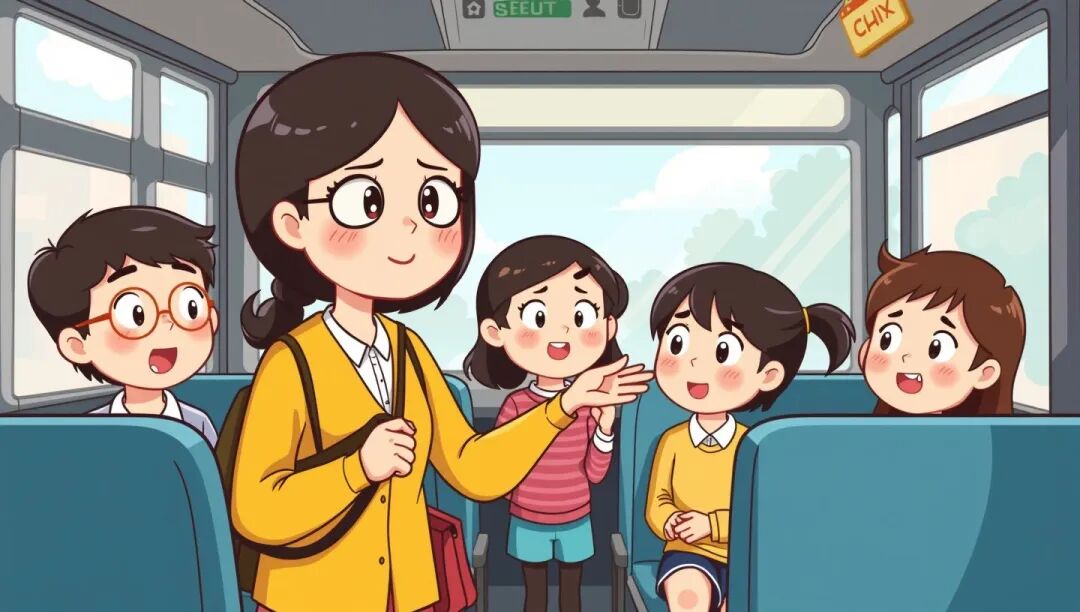 一位女教师和几个学生搭公交车回家,一路上,她一直耐心地询问学生们在学习上有哪些困难。