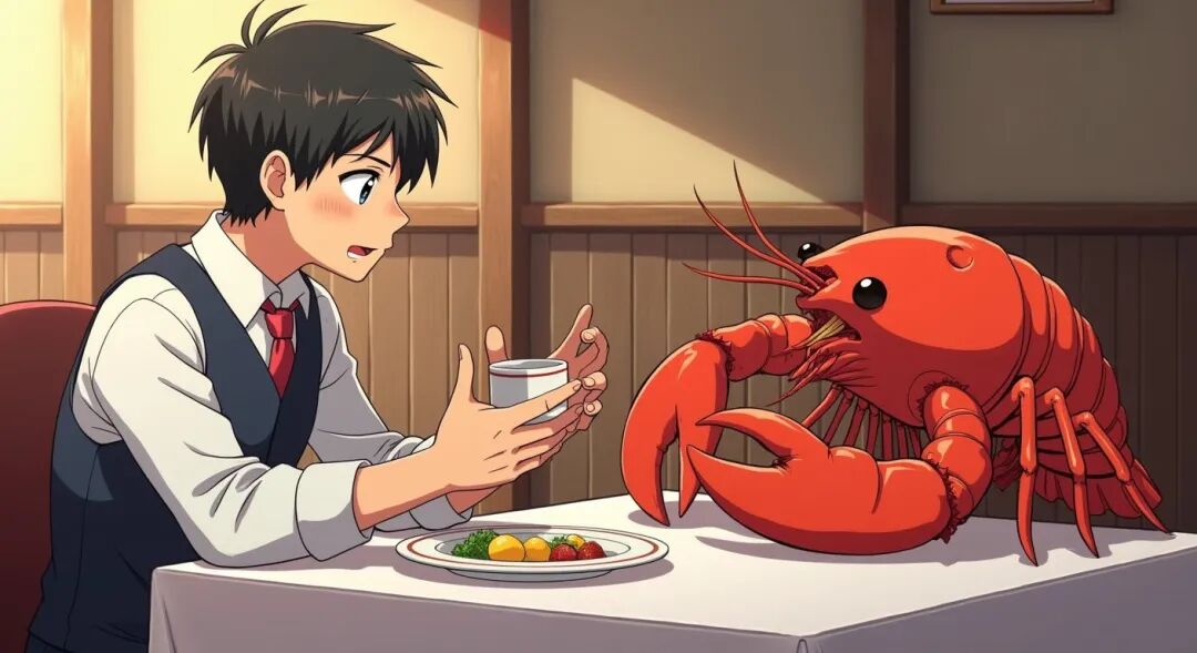 服务生立刻解释道:“这说明我们的龙虾新鲜呀!”