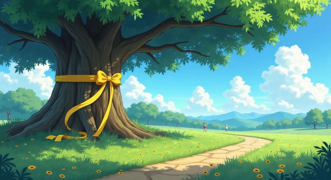一天,英语老师准备播放一首名为《黄丝带系在老榆树上》的歌。