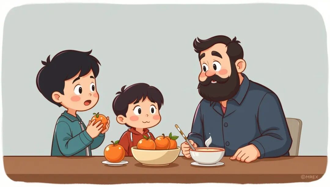 爸爸:“你有1个橘子,我再给你2个,你一共有几个?”