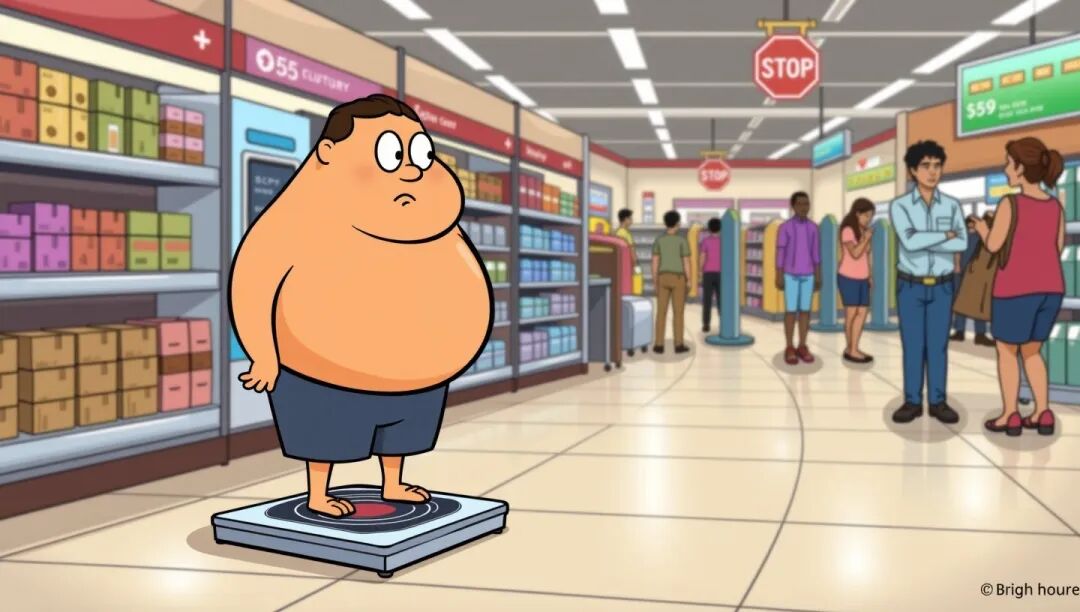 大卫去商场买家电时,看到地上放着一个家用体重秤,他立刻兴奋起来。由于身材较胖,他每次见到秤就上去称一称。
