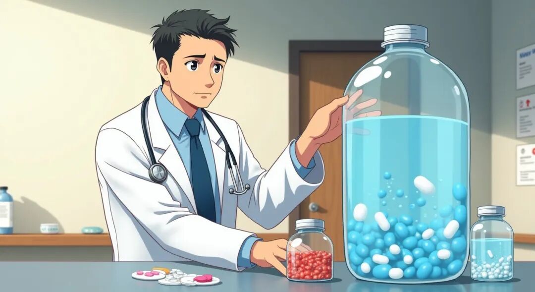 一个男子去某私人诊所看病,说他近期精神不大好。医生给他做了检查,然后离开诊室,拿了三瓶不同的药回来。