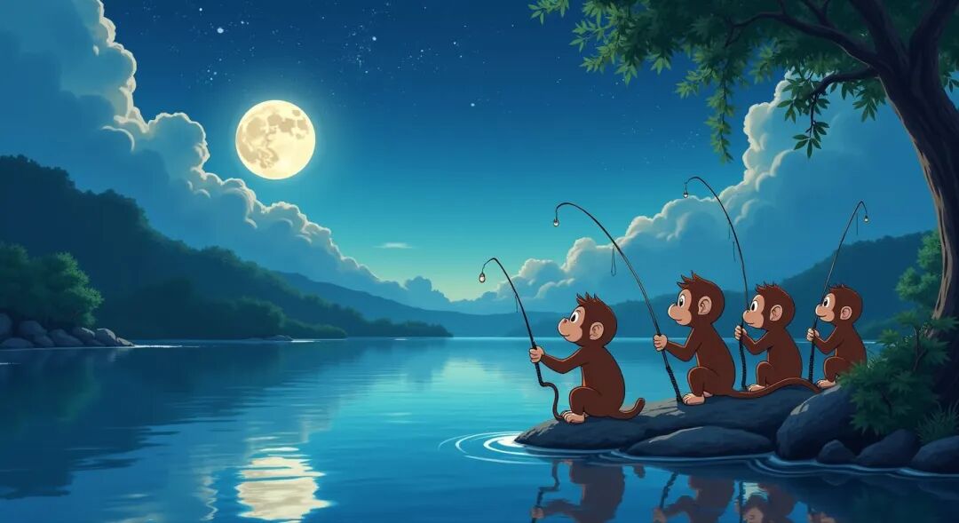 一个不懂事的小猴子急了:“我们什么时候才能捞到月亮啊?”