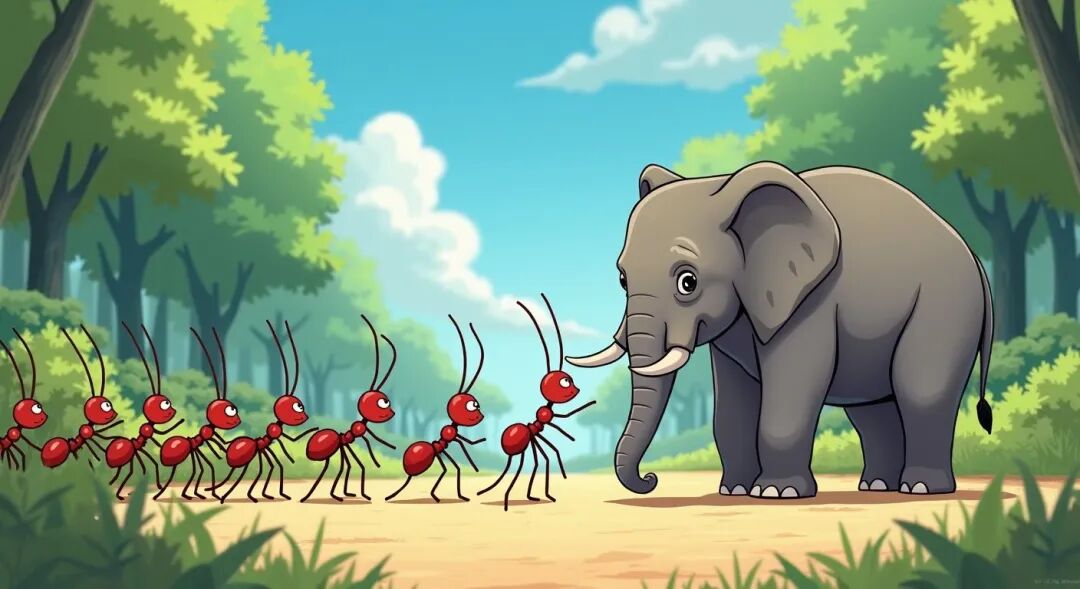 一只带头的蚂蚁答道:“昨天有头大象被我们一个兄弟绊倒了,摔成重伤。不巧的是,血库告急,所以我们给那家伙献血去。”