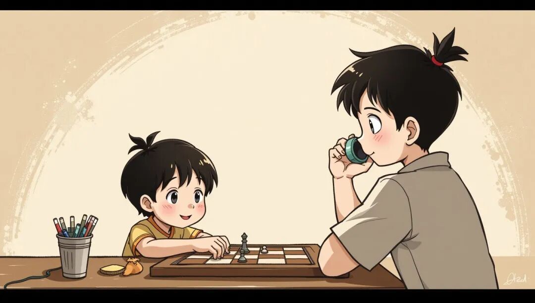 爸爸正在陪5岁的儿子小顺下跳棋。手机突然响了一看是朋友老侯打来的,他忙接起来:“侯哥,你好!”就在他和老侯聊得热火朝天的时候,小顺用崇拜的目光注视着爸爸。