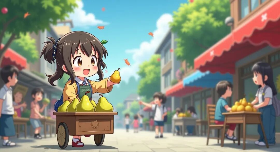 “卖梨了,卖梨了,4块钱10个!”